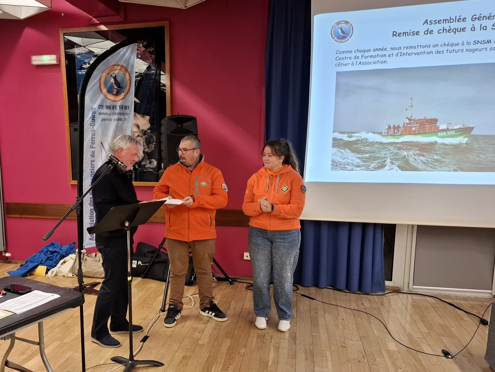 L’occasion de remettre quelques chèques à 2 associations locales, l’Aimée Hilda et l’Ar Jentilez ainsi qu’aux représentants de la SNSM et du CFI et d’honorer 2 figures de l’association pour leur implication pendant de nombreuses années.